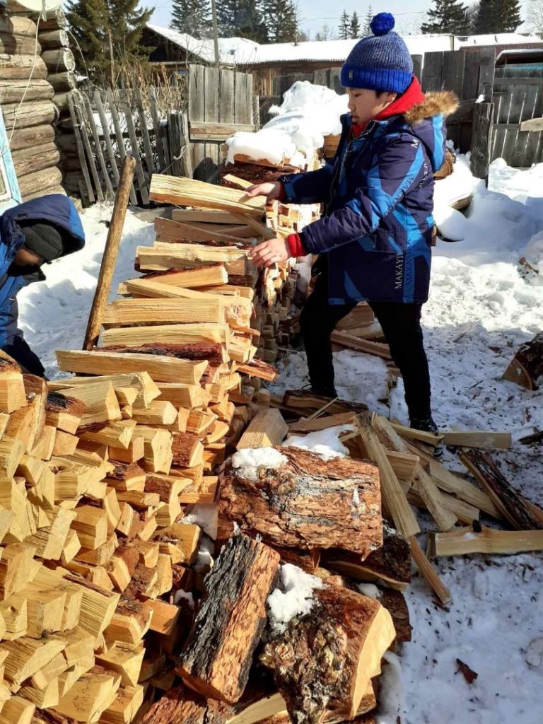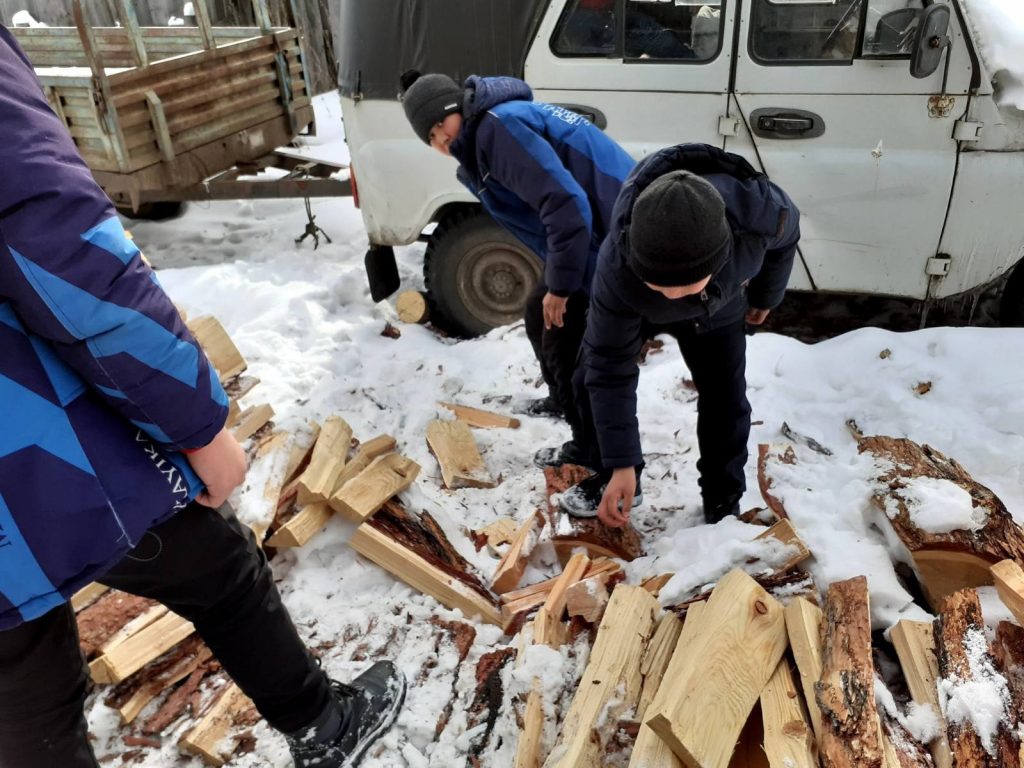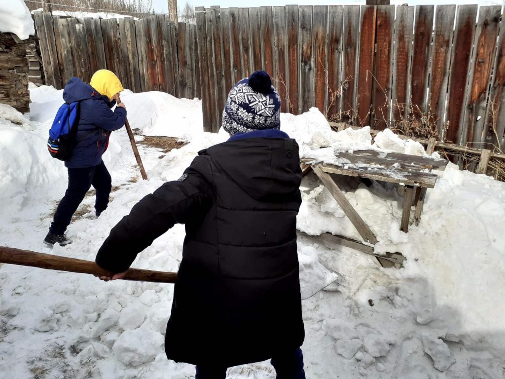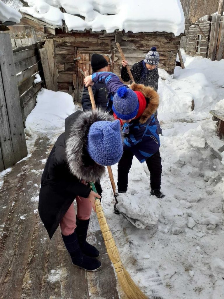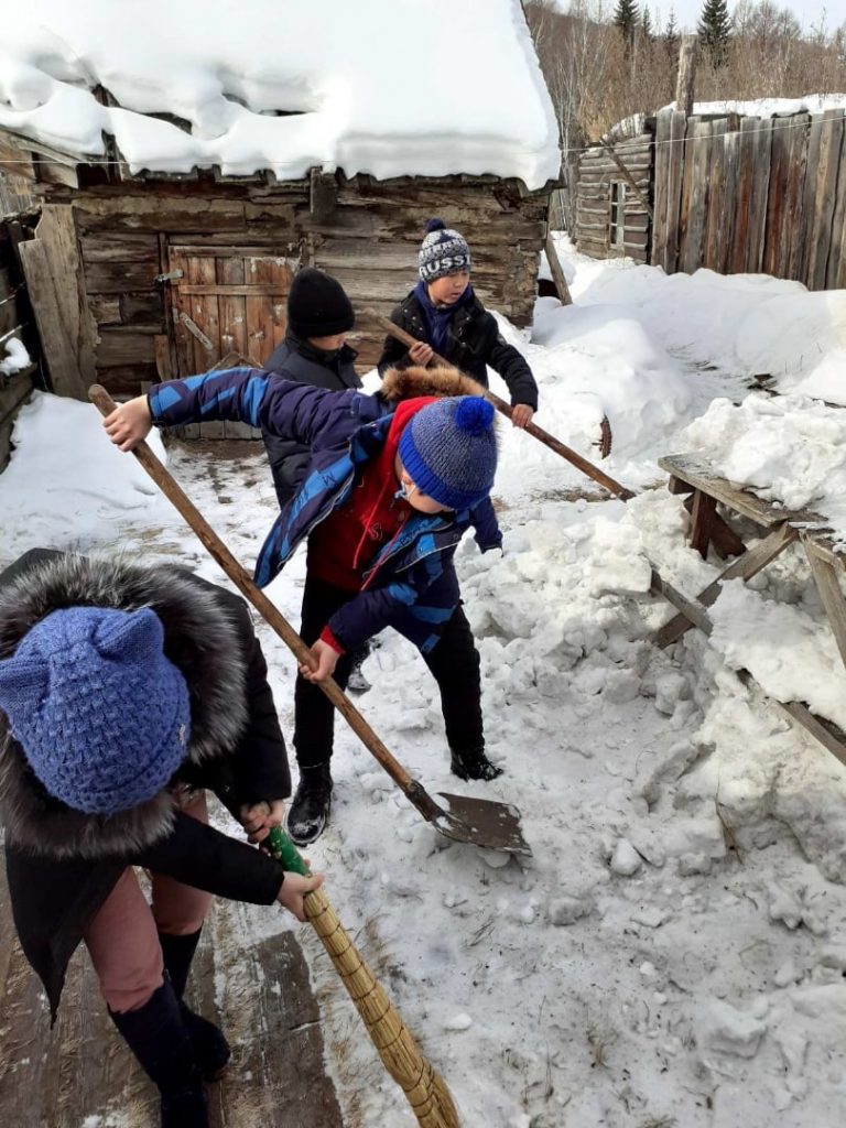 Ребята помогли по хозяйству, расчистили двор от снега.