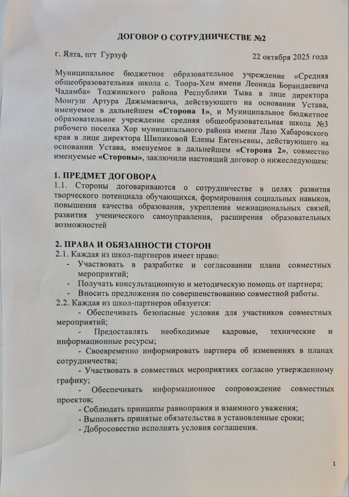 Договор со школой МБОУ СОШ №3 рабочего поселка Хор муниципального района имени Лазо Хабаровского края