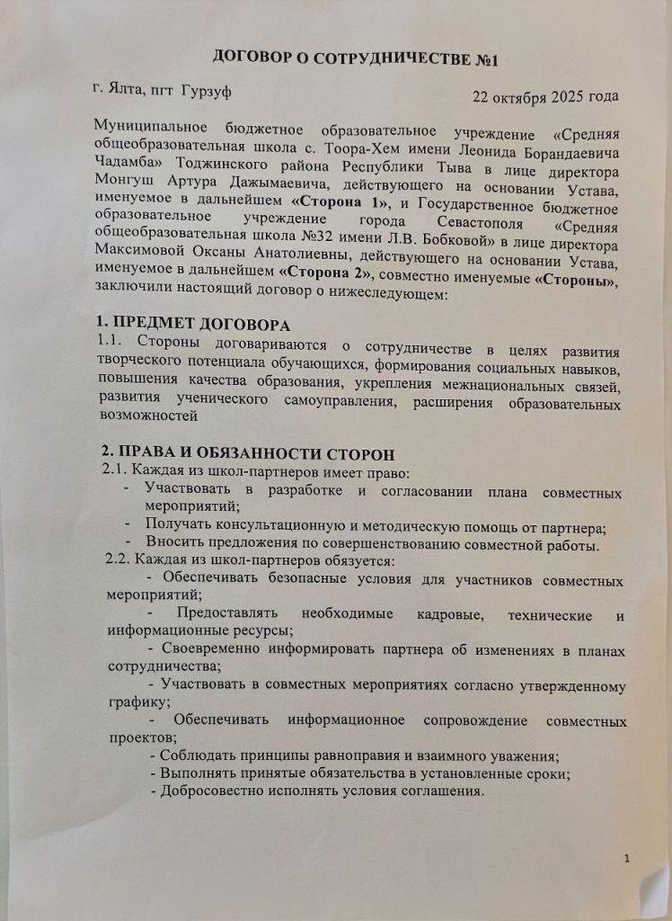 Договор со школой ГБОУ г. Севастополя «СОШ №32 им. Л.В. Бобковой»
